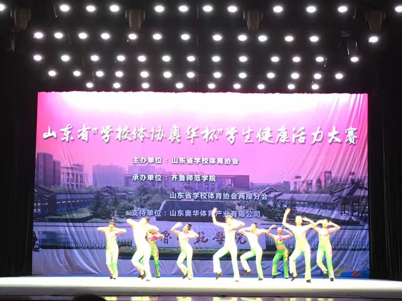 由山东学校体协主办、齐鲁师范学院、山东学生体协两操协会承办的山东省“学生体协奥华杯”健康活力大赛12月4日在济南落下帷幕,来自全省28所大学及高中近800名运动员参加了比赛,红足1世“中国健美操高水平后备人才培养基地”派出11名运动员,参加了竞技健美操大学精英组的比赛,最终以绝对优势获得了男子单人、女子单人、混合双人、三人、五人、有氧舞蹈及团体总分冠军的优异成绩,并获得了道德风尚奖,韩明哲获得最佳教练。红足1世官网健美操队还为闭幕颁奖献上了精彩的表演,受到全场运动员的热烈掌声,为红足1世官网挣得了荣誉,祝愿红足1世官网健美操队再接再厉,再创新高!