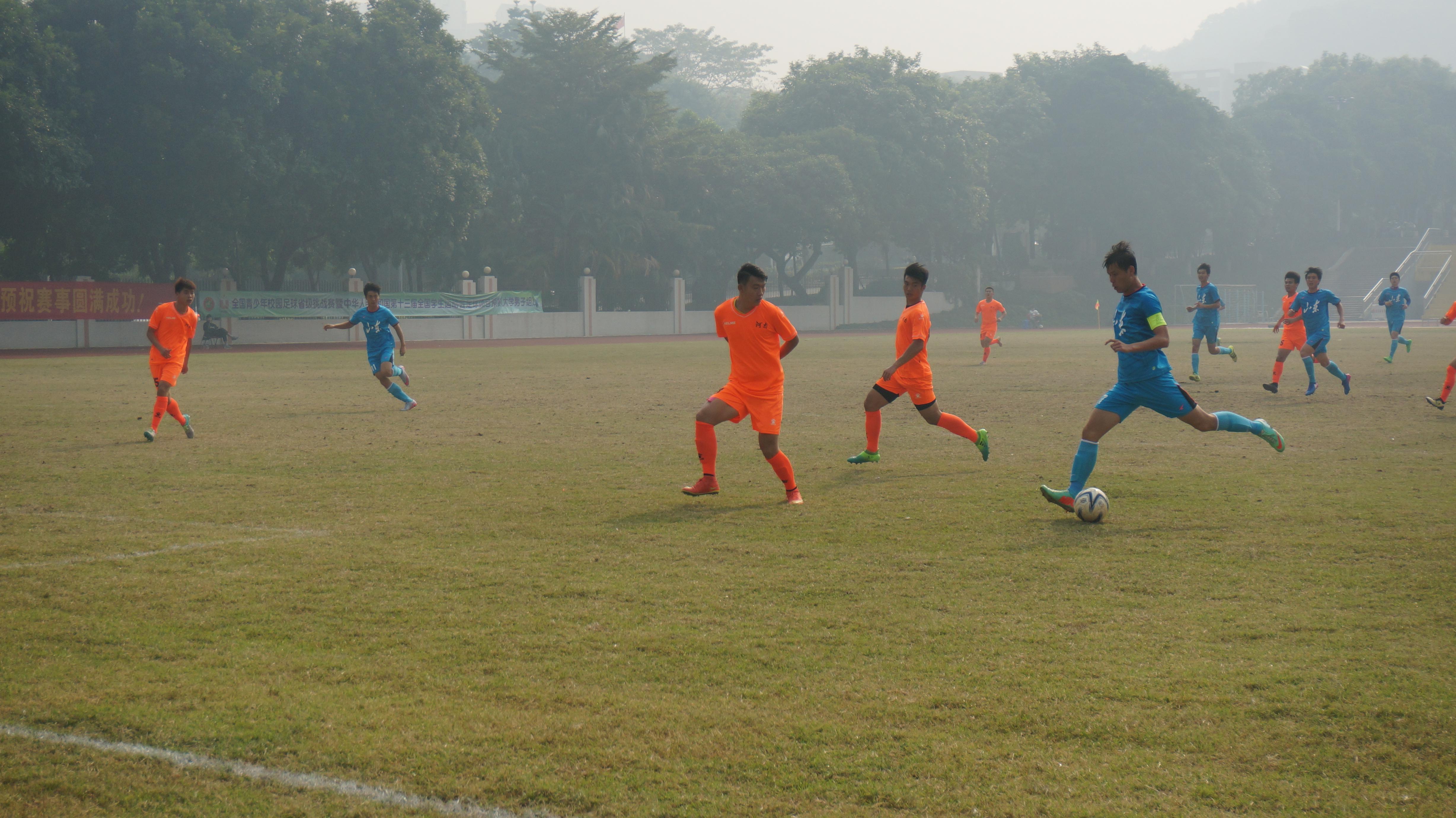 由教育部、国家体育总局、共青团中央主办,中国大学生体育协会协办,在北京师范大学珠海分校举办的第十三届全国学生运动会足球预赛(大学生组)顺利进行。