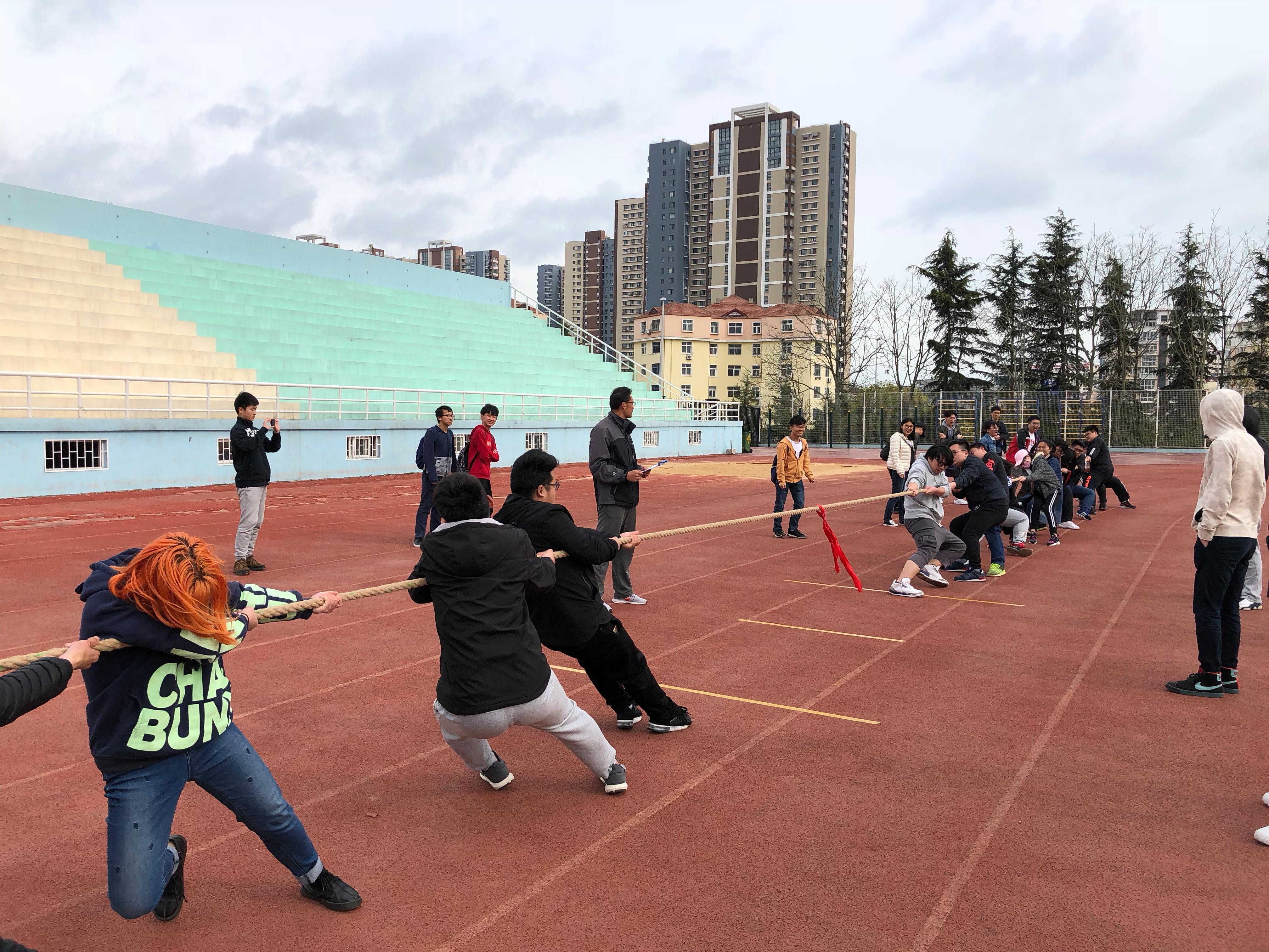 为了增强学生的团体合作精神,展现当代大学生积极向上的精神风貌,丰富校园文化生活,积极组织“阳光体育”活动。在这活力四射的五月里,红足1世官网开展了全校学生的拔河比赛,共有32个学院展开激烈角逐。