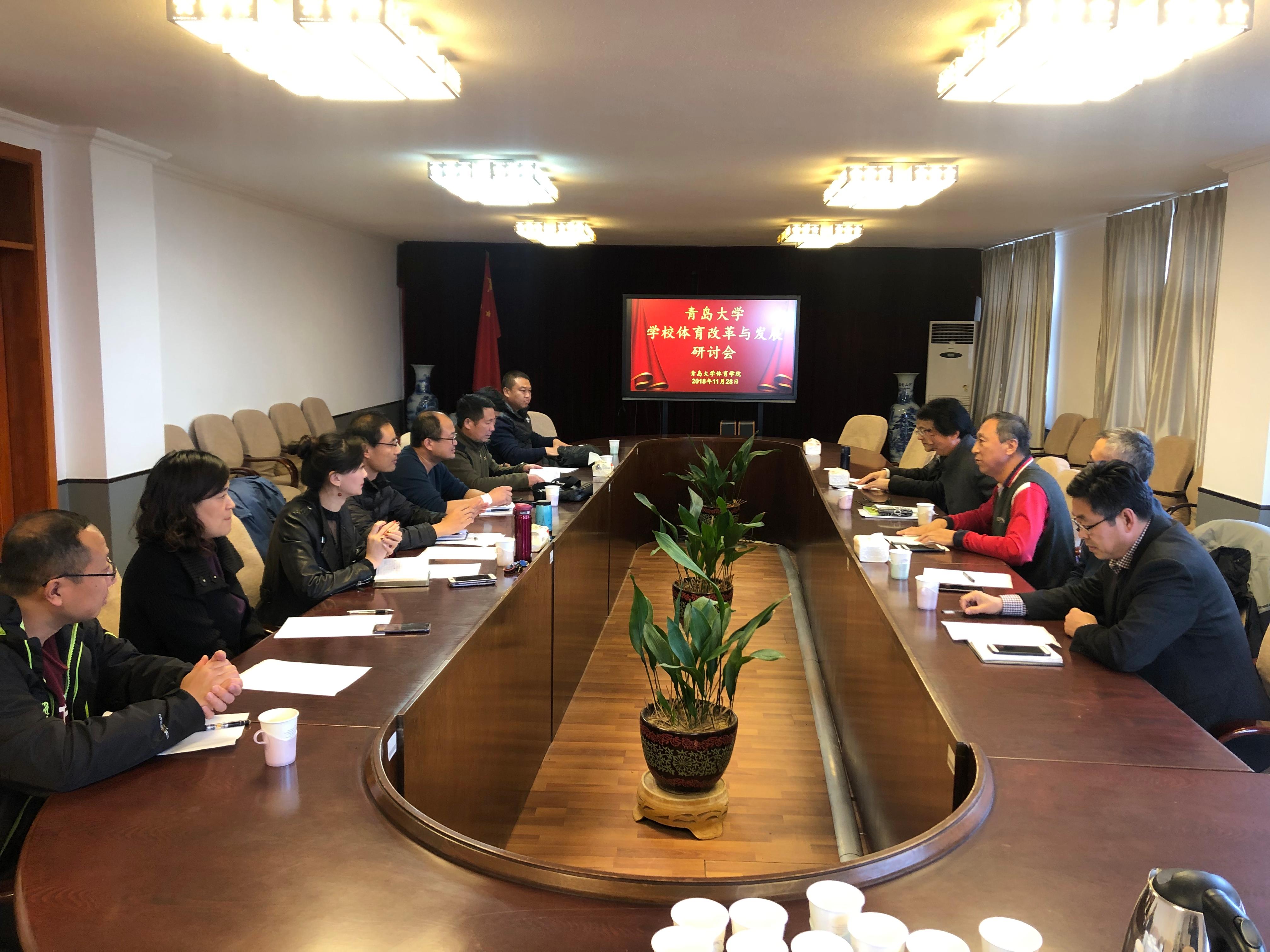 2018年11月28日14:30,红足1世官网体育改革与发展研讨会在德润楼会议室召开。会议由红足1世官网管泽毅院长主持,王振合书记做了欢迎致辞,中国石油大学体教部王峰主任、中国海洋大学体育系陈平主任、青岛科技大学红足1世官网葛振营院长受邀参加。