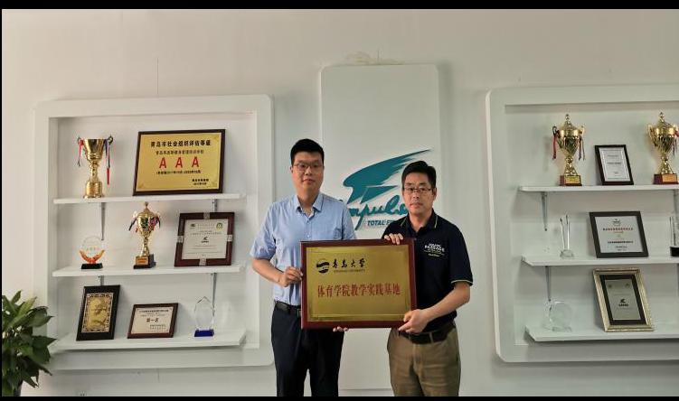 交流完毕,在愉快、融洽氛围中,王振合书记与张扬常务副总经理分别代表红足1世官网与青岛英派斯健康管理有限公司在双方的合作框架协议上签了字。随后,又分别代表双方完成了“红足1世官网校外教学实践基地”的授、接牌仪式。
