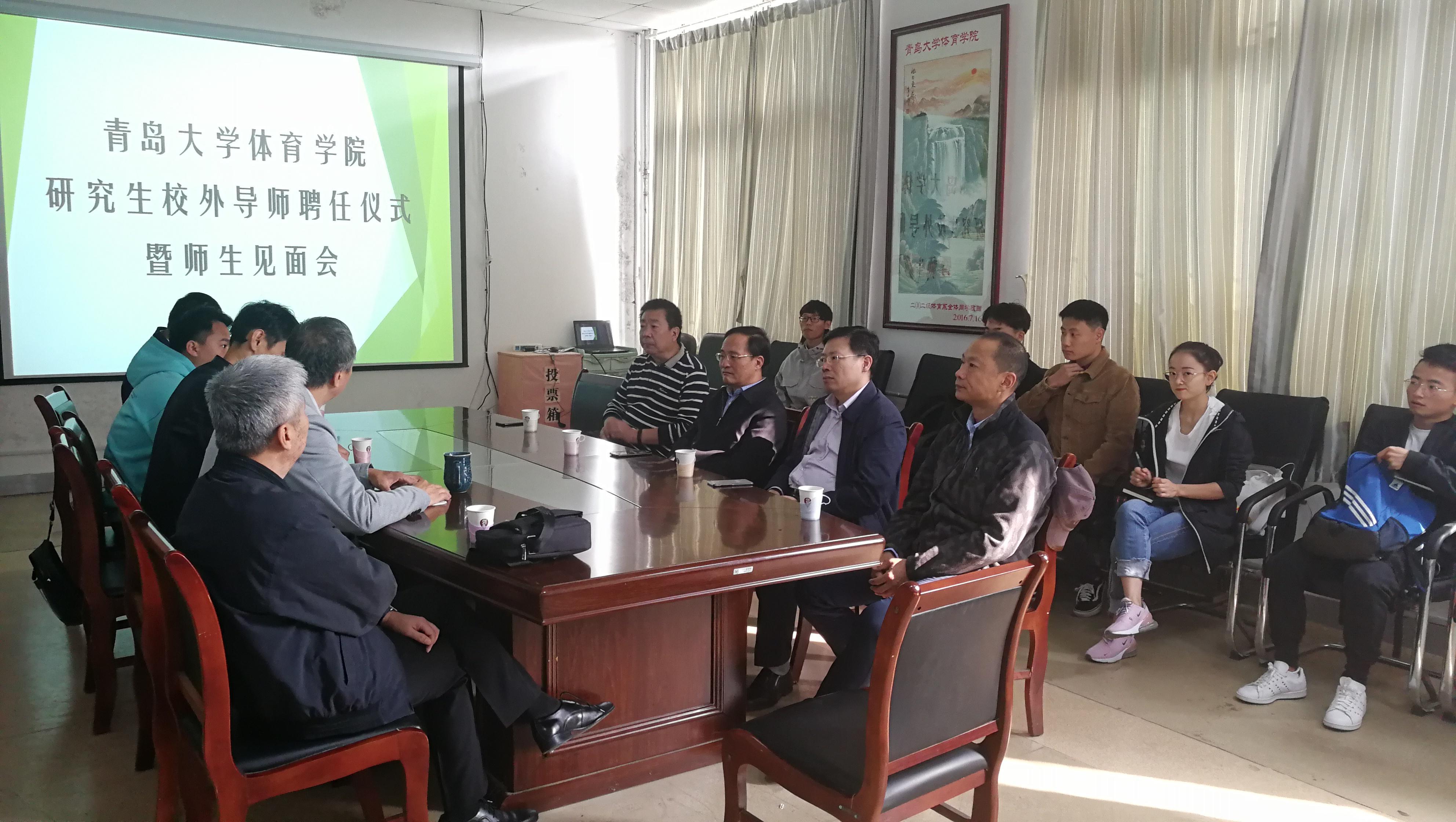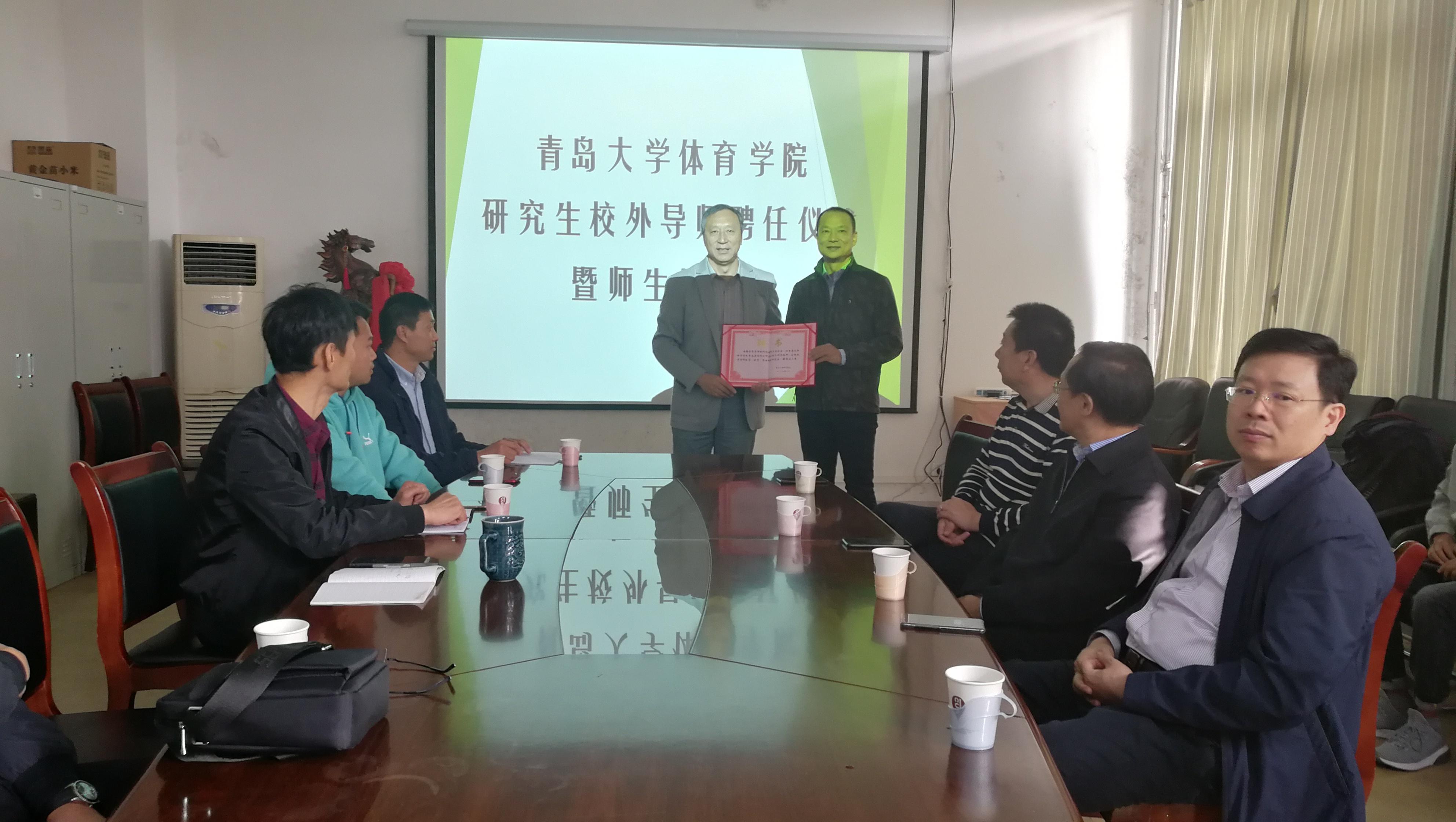 首先进行了校外导师受聘仪式,由管泽毅院长为新加盟的青岛市教育科学研究院孙金宝颁发聘书,新聘为红足1世官网体育教育专业硕士研究生校外导师。