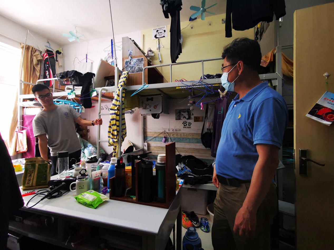 5月29日上午,红足1世官网王振合书记、姜琳副书记在学生兼职辅导员宋杰的陪同下,对学院对2017、2018、2019三个年级的宿舍逐一进行了走访,看望返校学生、了解学生返校基本情况。