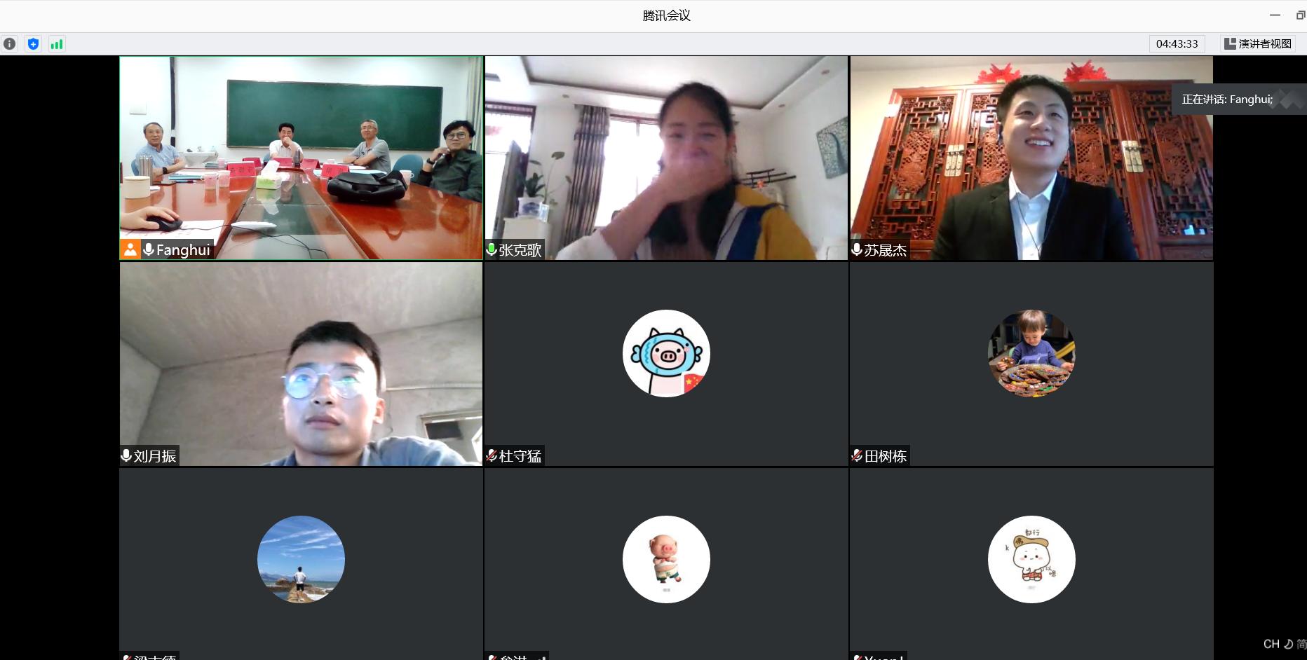 2020届研究生刘月振、苏晟杰和张克歌三位研究生,在线共享和演示学位论文PPT,进行20分钟左右的汇报,讲述论文的内容、观点与创新点,并利用音频、视频,与各位答辩委员会专家进行实时交流。答辩委员会专家针对每位学生的学位论文内容,包括论文结构、内容、书写格式,提出了相关问题和修改建议。答辩人对答辩委员专家的提问认真作答,仔细记录专家们提出的修改意见和建议。