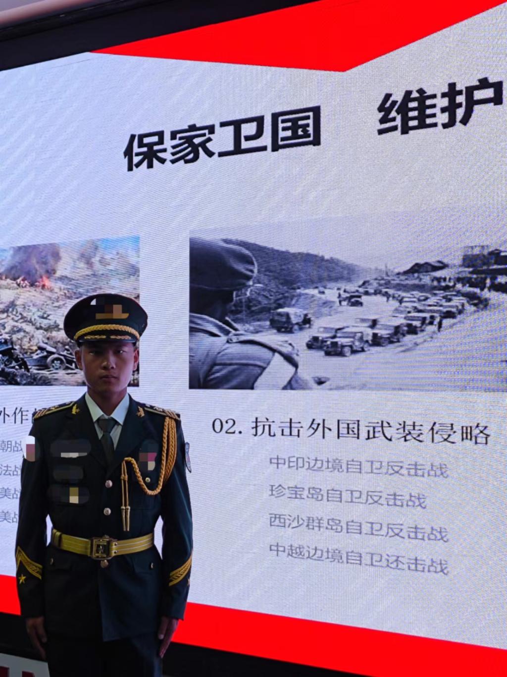 我辈少年郎,当肩负爱国志,不惧千里荆棘,凯歌前行!通过此次的国防教育主题宣讲,号召同学们弘扬爱国主义精神、强化忧患危机意识、传承红色基因血脉、增强国防观念。在未来的学习与生活中,践行爱国之志,为母校为国家争得无上荣光,奉献青春热血。