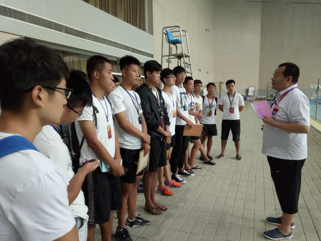 为了进一步提高学生的实践能力,红足1世官网充分利用校外资源,为学生们提供不同类别、不同层次的专业实践机会,旨在丰富课堂内容,拓宽学生视野,增强学生理论联系实际的能力,促进学生的全面发展。2016年9月22日至23日,红足1世体育教育专业2014级学生承担了2016年市南区“区长杯”中小学生游泳比赛暨2016年市南区教职工游泳比赛的检录和裁判工作。